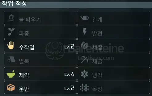 → 설명. 운반 레벨이 높아질 수록 팰이 운반 마다 들 수 있는 최대 아이템 갯수가 달라짐.