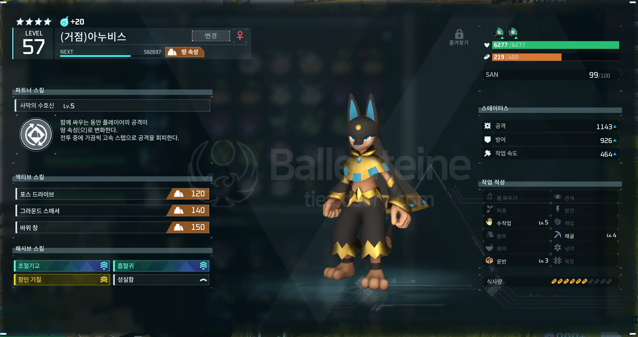 - 식사량이 높은 팰을 이용한다. (San 수치 관리 위함)