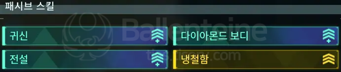 패시브가 다 붙을 시, "다이아몬드 바디, 귀신, 냉철함, 겁쟁이" 까부냥이 됩니다.