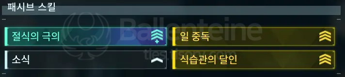 | 냉철함 | 액티브 스킬 쿨타움 단축 +30% 공격 +10% |