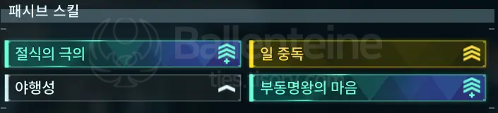 | 부동명왕의 마음 | SAN 수치 감소량 감소 +20% | 모든 팰 |