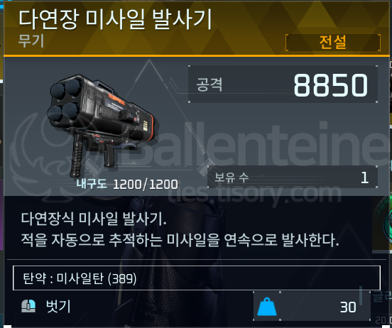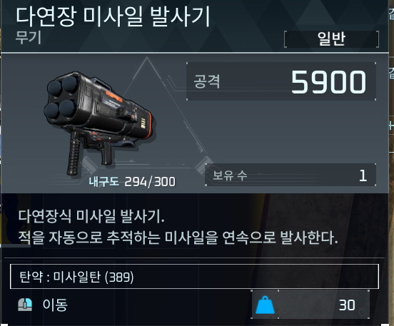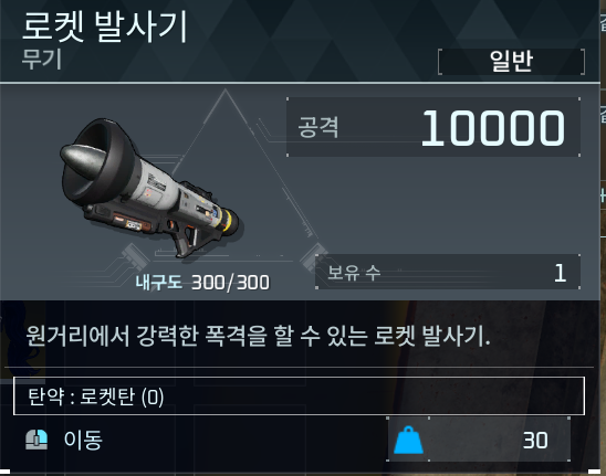 | (일반)이상 로켓 발사기 한발 위력은 강력하나 장전 시간이 오래걸림 (우선 순위 중) |