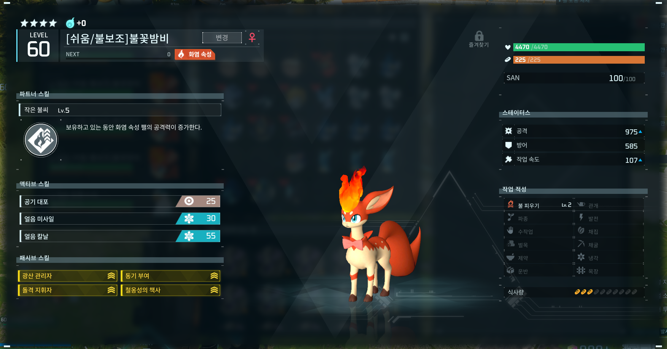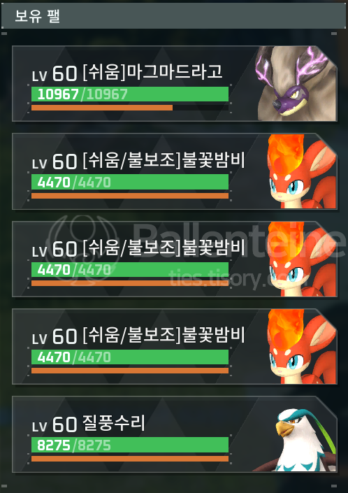 이 전략의 핵심인 불꽃밤비의 화염속성 팰의 공격력 증가