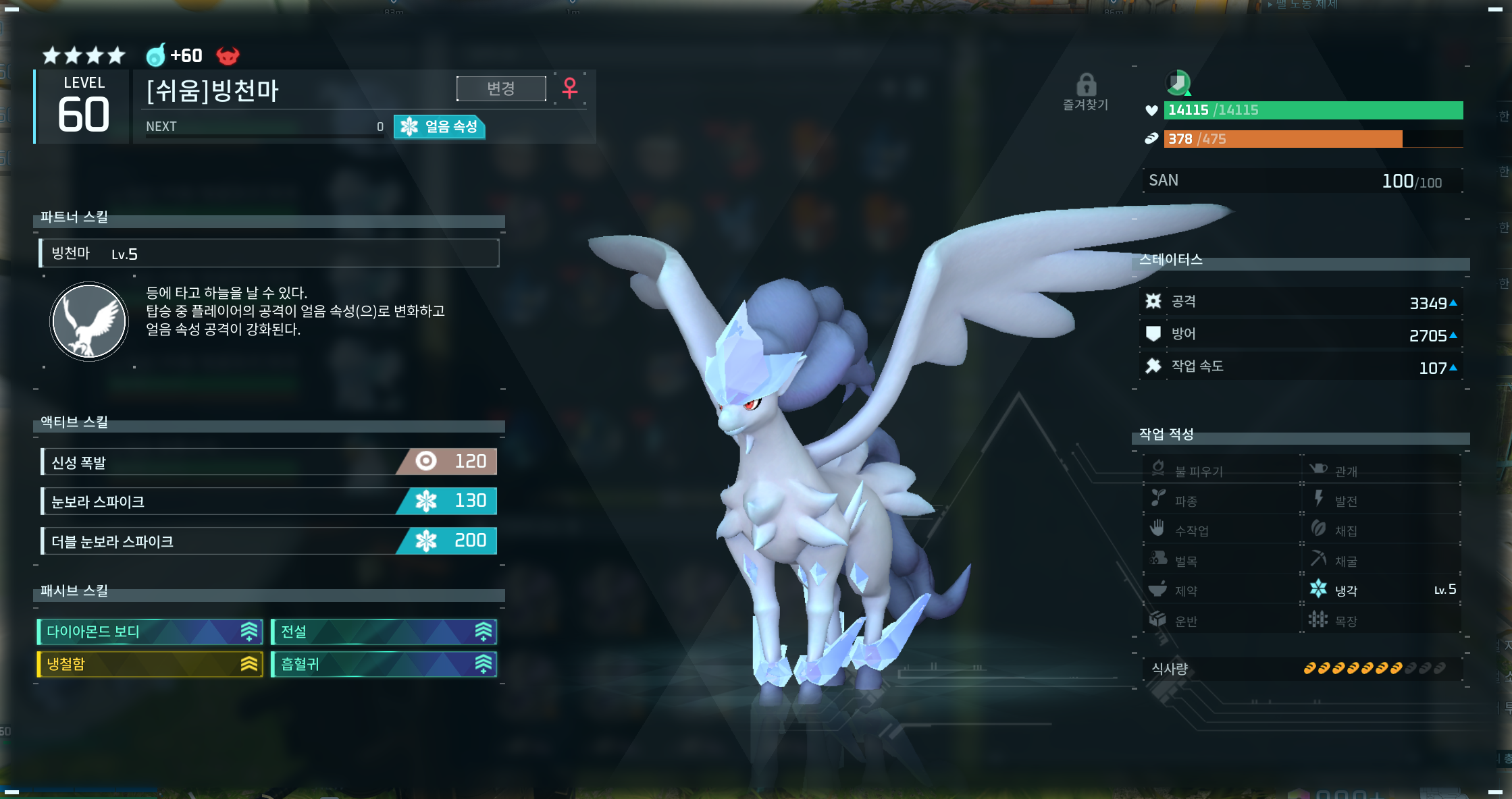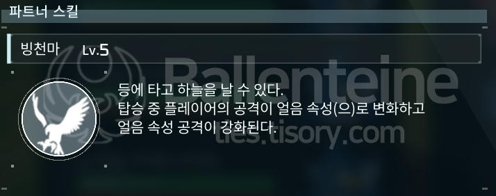 하지만, 얼음 속성을 선택한다면 빙천마를 채택 하여, 얼음 기술 중 사기적인 DPS를 가진 눈보라 스파이크, 더블 논보라 스파이크를 채택해보는 것 또한 고려해 볼만 하다