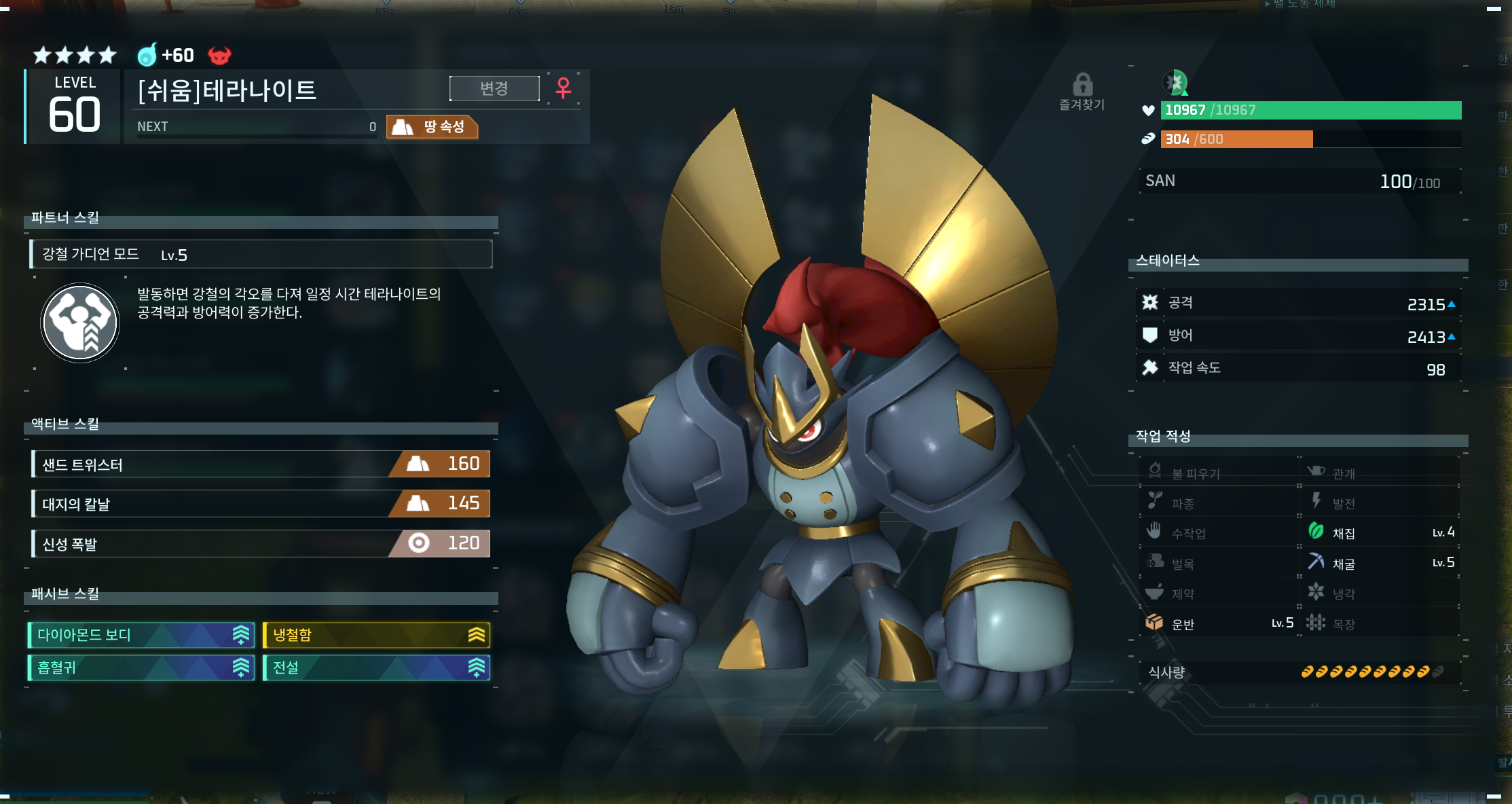 한줄 평 : 노말/하드 불문 레벨 높은 팰로 때려 잡으면 상성 불구하고 다 때려 잡히긴 한다.