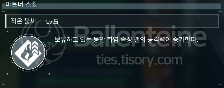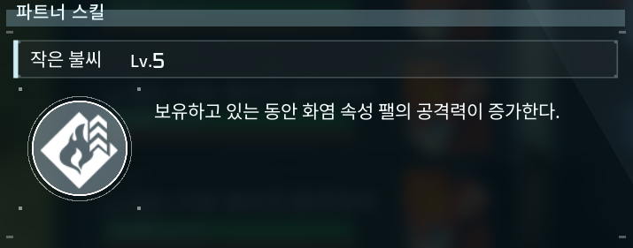 보유하고 있는 동안 화염 속성 팰의 공격력이 증가한다.