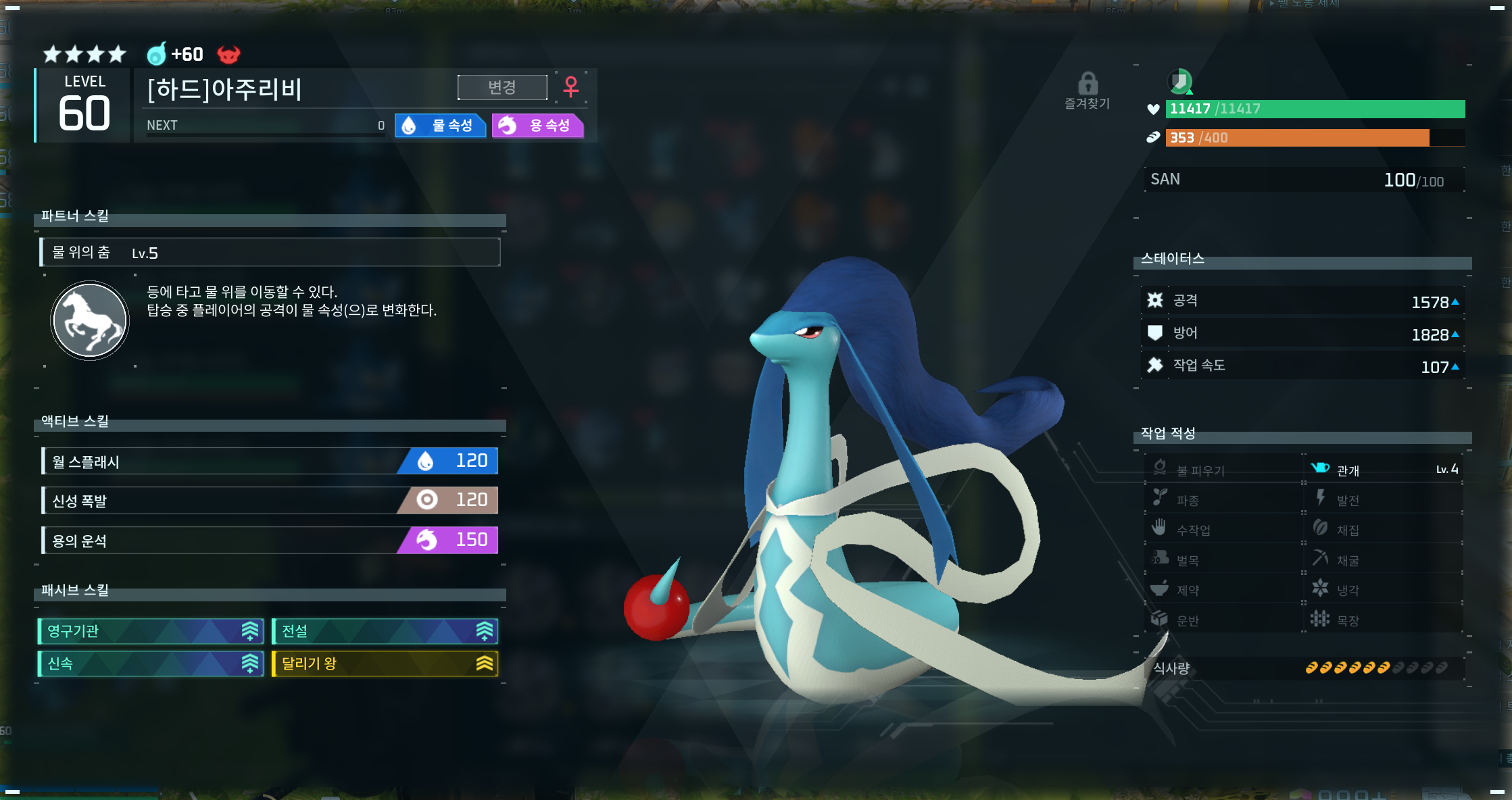 보유하고 있는 동안 물 속성 팰의 공격력이 증가한다.