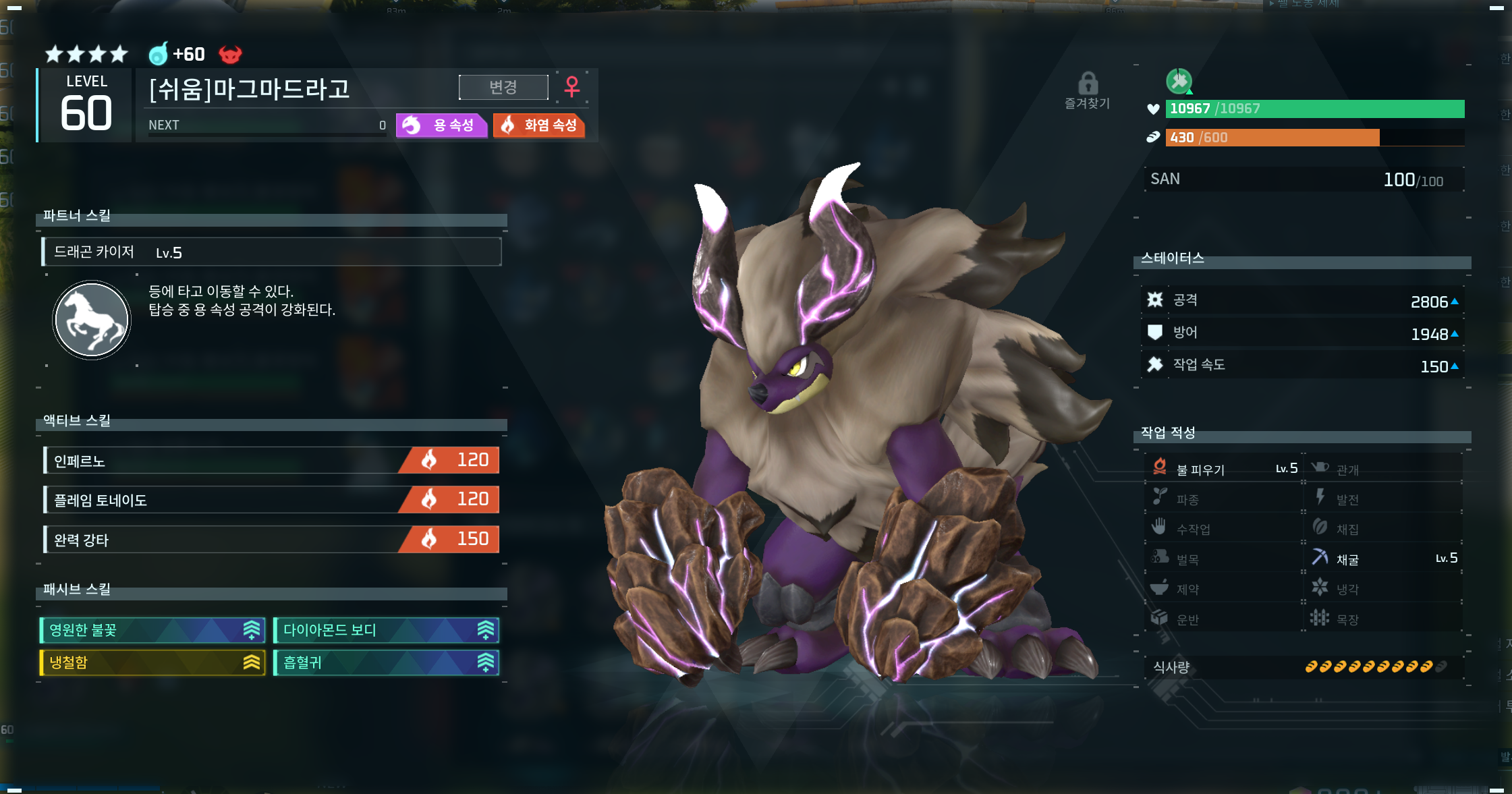 하지만 현재 팰 월드 내에서는 용 속성 팰의 공격력을 강화할 수 있는 파트너 스킬을 갖고 있는 팰이 존재하지 않는다.