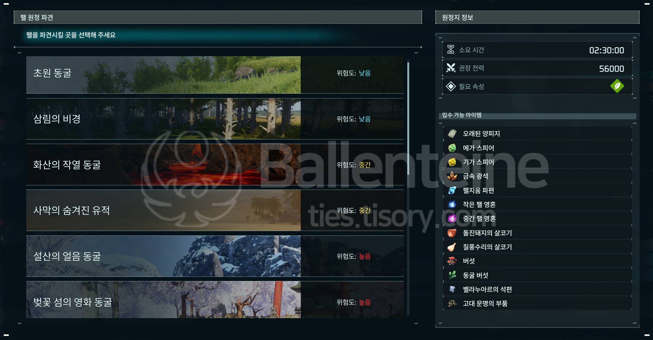 심림의 비경(팰 애호 단체의 탑) 쉬움 버전 클리어 시, 원정을 보낼 수 있으며 질풍수리의 살코기를 얻을 수 있다.