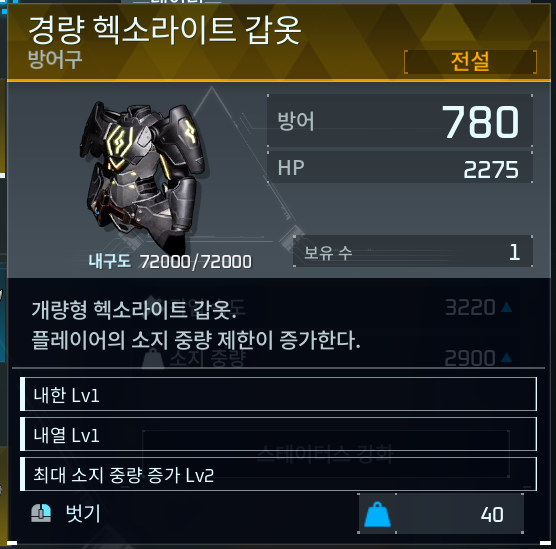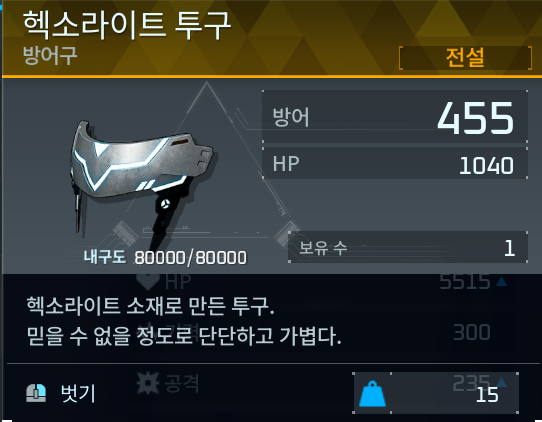 | (전설) 장비들 공격무기와 달리 방어구는 필수가 아님 질풍수리 & 글라이더 등으로 공격 회피의 자신이 있다면, 중요도가 낮아짐 다만, 있다면 안전성이 증가 되기에 컨트롤에 자신이 없다면 구비 해두는 것이 정신 건강에 이로움 |