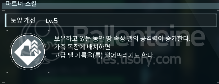 보유하고 있는 동안 땅 속성 팰의 공격력이 증가한다.