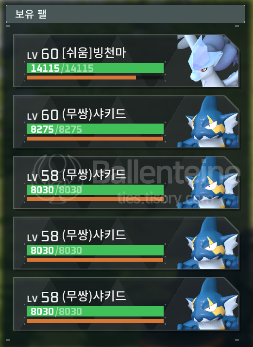 위와 같이 스킬은 땅 속성/얼음 속성 기술이 유리하나 열매로 얻을 수 있는 기술 중 마땅한 것이 없다.