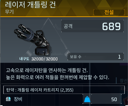 (전설)이상 레이저 개틀링 건 빠른 공격 속도 (우선 순위 중) |