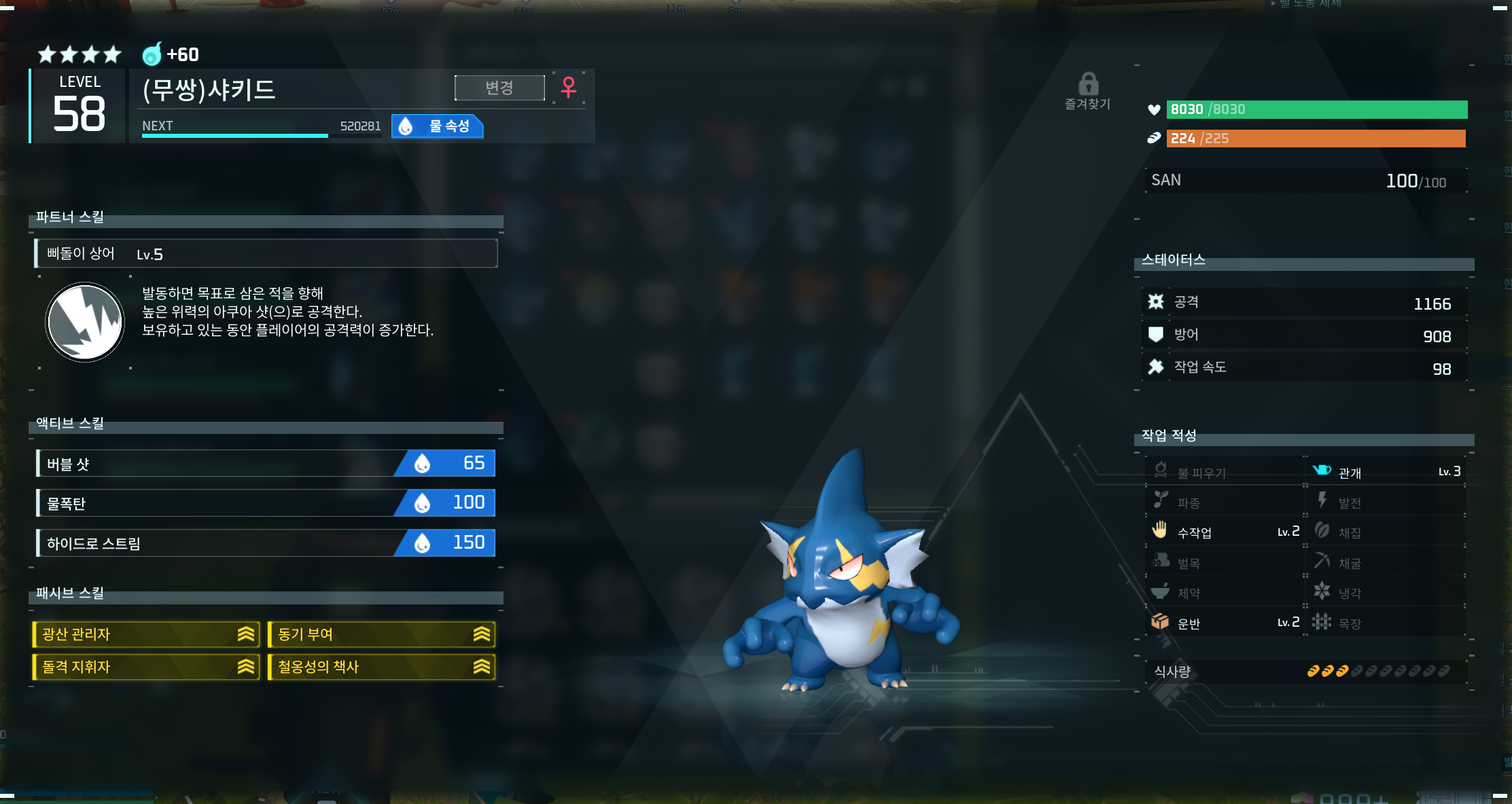 단, 이 부분은 권장하지 않는데 물 속성에서 쓸만한 팰이 없는데다가, 레비드라의 덩치가 커서 모든 스킬을 풀HIT로 맞기 때문에 방어적인 부분에서는 부적절 하다.