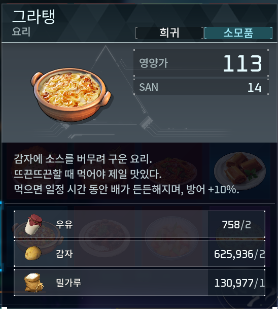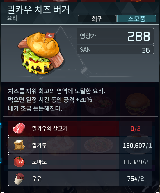 양파, 당근, 감자, 빨간 열매, 상추, 우유, 밀, 알 등은 수확용 거점을 만들었다면 문제는 없겠지만, 고기와 같은 경우는 일일이 수급하기 어렵다.