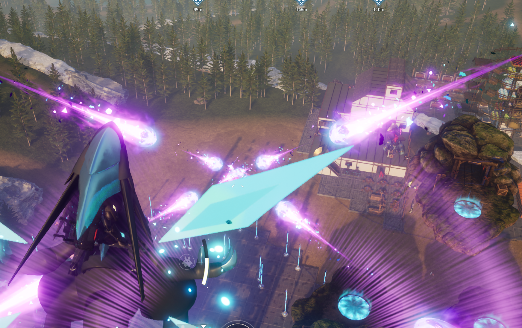 레이드 보스 몹들은 모두 범위형 기술 뿐만아니라 관통형 기술을 쓰기 때문에 근처에 있는 거점 토대가 모조리 박살나는 경험을 하실 수 있습니다. 따라서 위 이미지 정도 까진 아니더라도 충분한 거리를 벌린 이후에 레이드 전용 거점을 건설하는 것을 추천합니다.