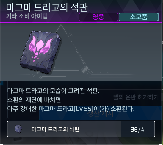 | 패왕의 뿔 (궁극) 고대 문명의 코어 마그마 드라고[궁극]의 석판 (일반) 용의 거대한 알 수련의 결정 고대 문명의 부품 |