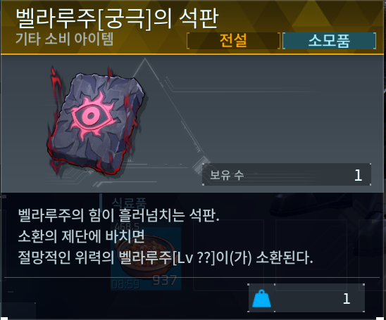 | 암흑의 거대한 알 고대 문명의 코어 내열 방한 속옷 +2 벨라루주[궁극]의 석판 (일반) 마녀의 관 (궁극) 재능의 열매 |