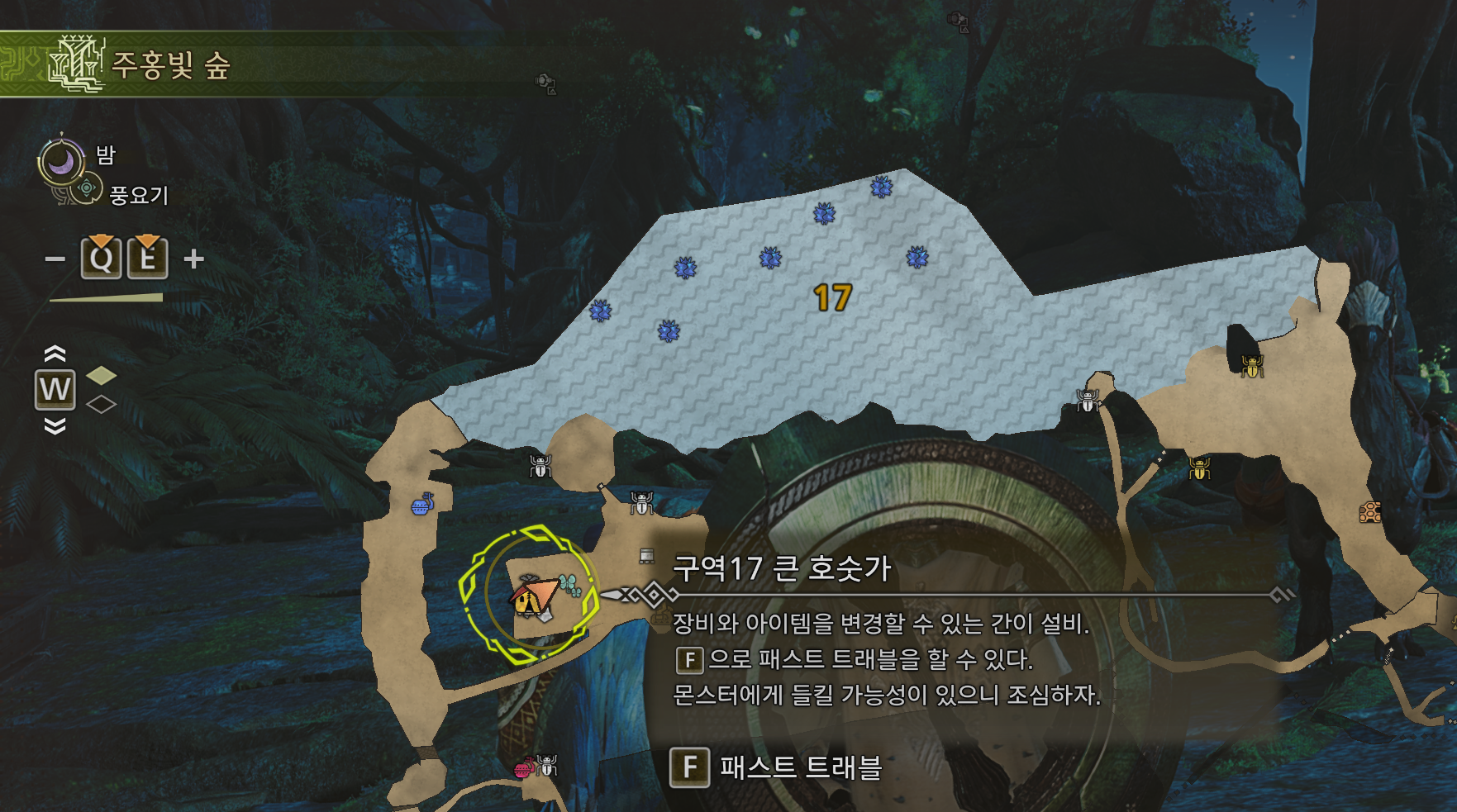 → 주홍빛 숲 / 구역 17 큰 호숫가에서 진행하면 대물 낚시를 진행 할 수 있습니다.