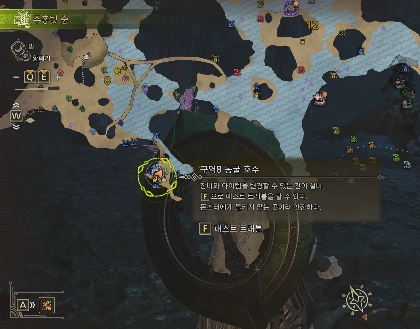 → 풍요기 아침 ~ 낮 사이, 주홍빛 숲 8 에리어 동굴 호수 (텐트에서 11시 방향 위치) 에서 출몰