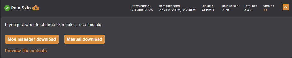 ※ 피부도 아래 모드를 통해 변경 할 예정입니다. 피부 색 차이 때문에 Pale을 선택하는 분들은 Fitted로 변경하시고 아래 모드를 다운 받으시면 해결 할 수 있습니다.