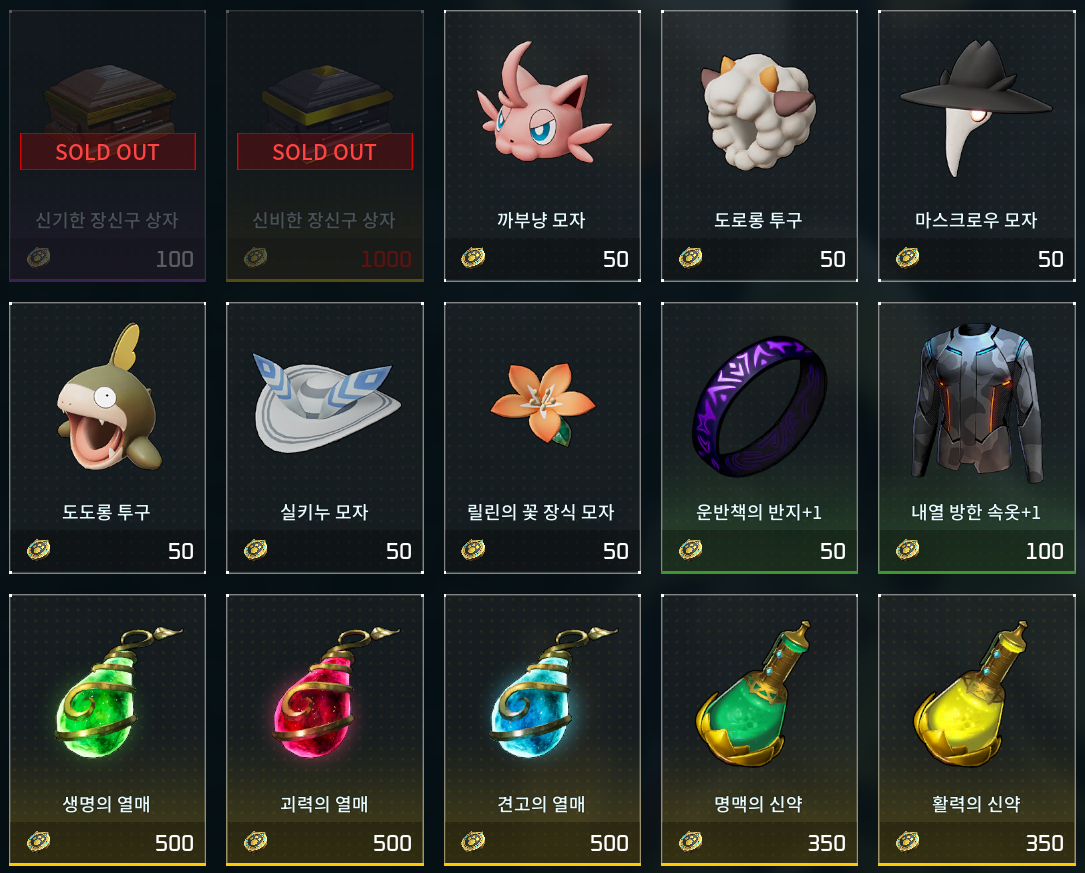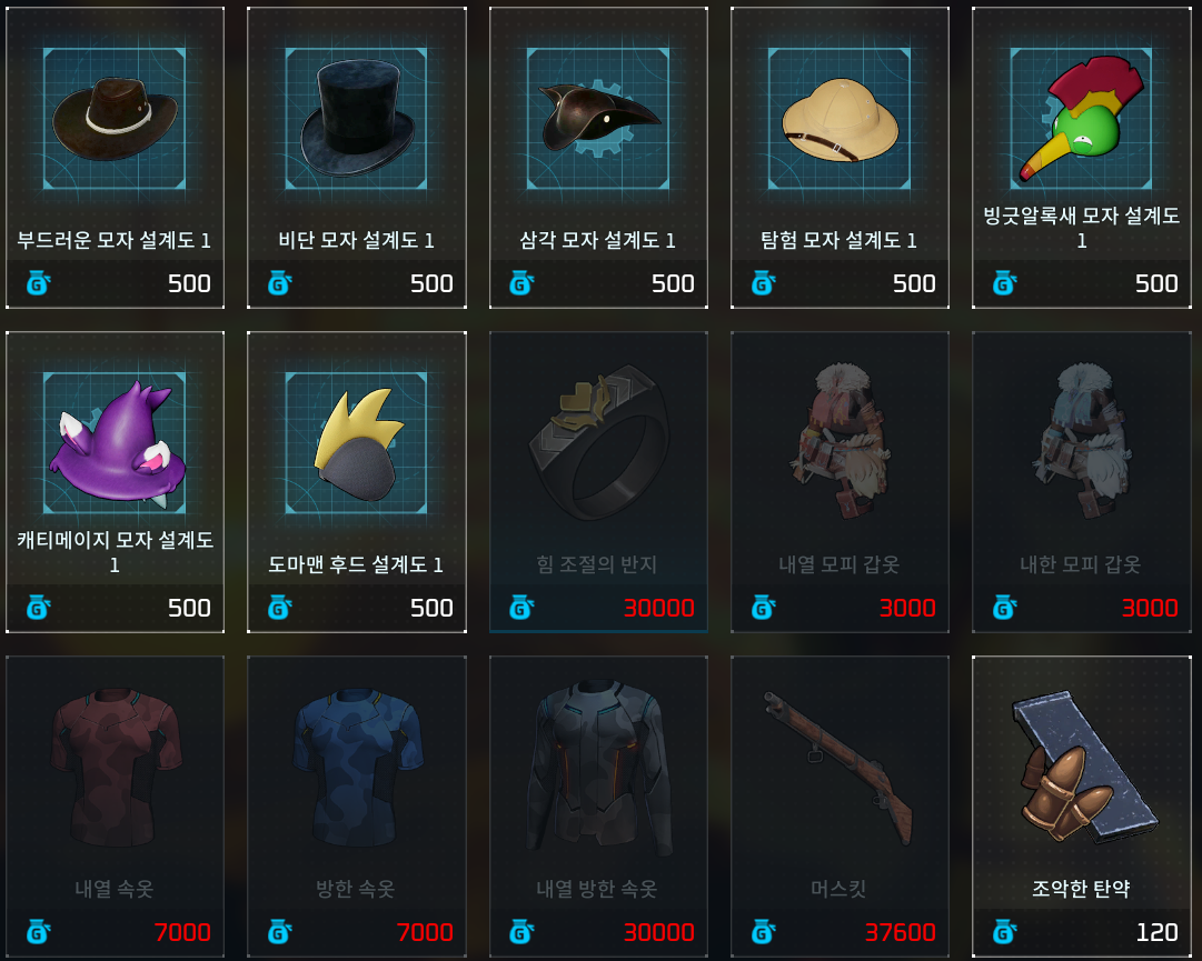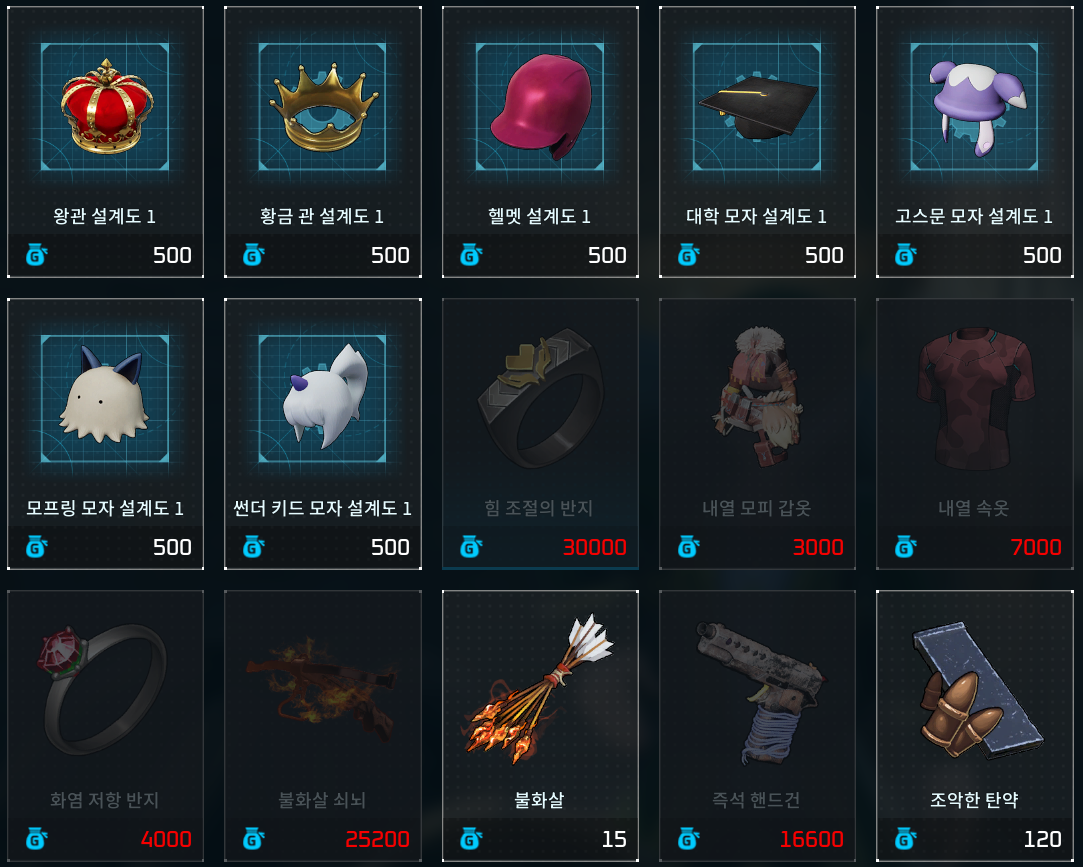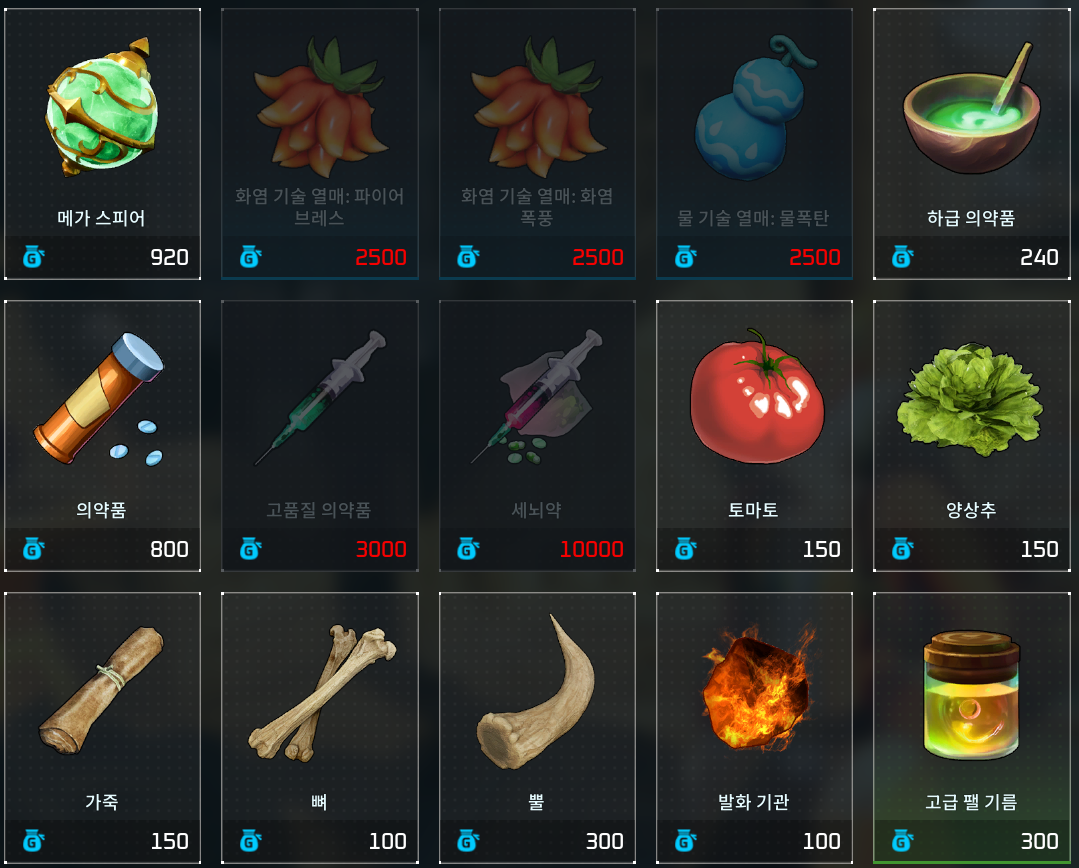 판매 아이템에 관한 리스트는 아래 표에 정리해 두었으니 확인 하시면 좋겠습니다.