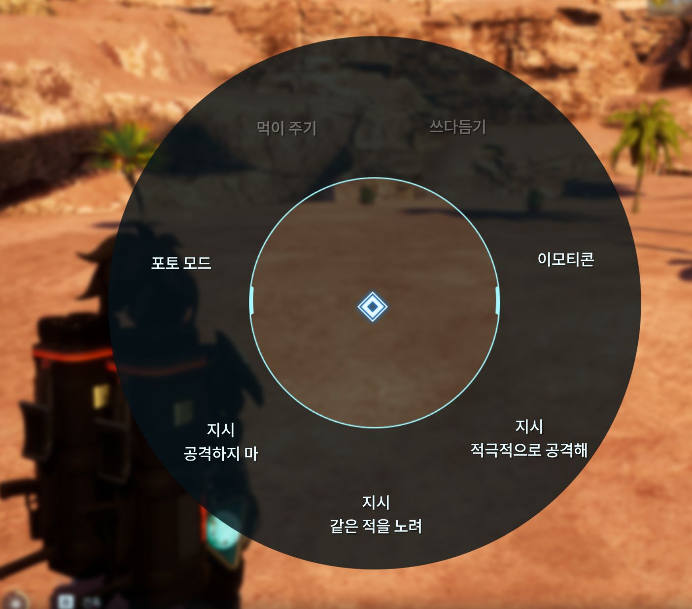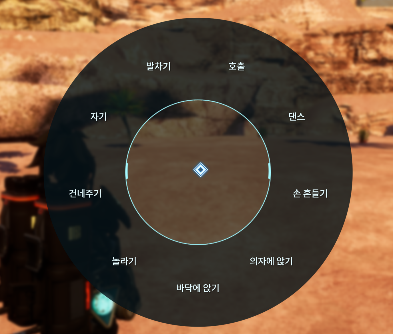 이모티콘(포즈)는 컴퓨터 키보드 기준 숫자키 "4"를 누르면 아래와 같이 출력되며, 거기서 이모티콘을 누르면 플레이어가 취할 수 있는 이모티콘 목록이 쫙 뜹니다.