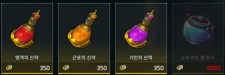| 셀레스디얼 | 거인의 신약 * 1 미래의 기술서 * 2 금화 * 20000 |