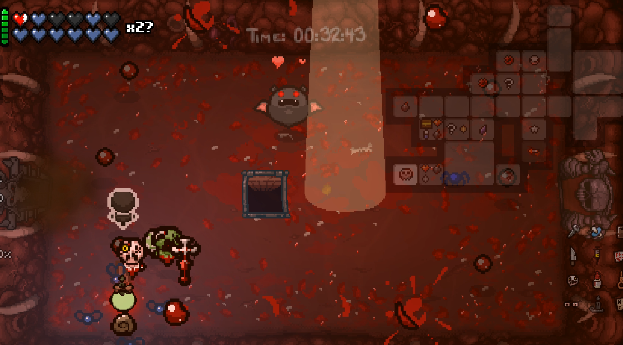 이때 상자 맵 혹은 다크룹 진입 이전에 천사방 혹은 희생방에서 열쇠 조각 1,2를 모았다면, 메가 사탄 방으로 진입 할 수 있습니다.