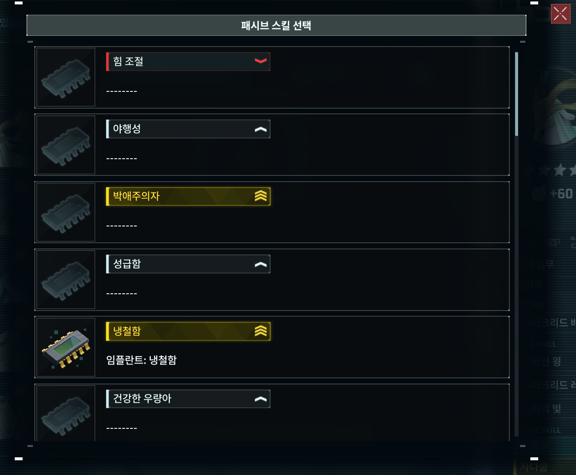 팰 수술대에서 패시브를 생성 혹은 변경 할 수 있지만, 모든 패시브에 대한 임플란트가 있는 것이 아니기 때문에 아래 리스트를 확인 하시면 되겠습니다.