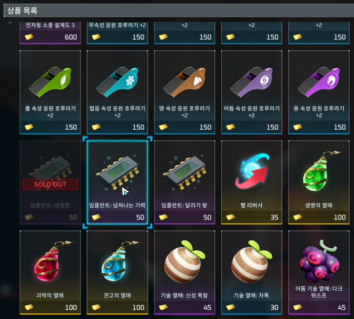 | 억센 육체 | 최대 기력 +20% | 상점 |