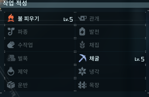 냉각은 적성이 높으면 아이템 보관 시간 증대, 작업 속도 증진에 효과가 있습니다.